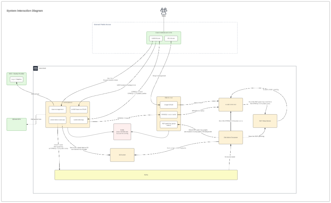 The system is a graph-native database that implements the national graph data model ABIS, which was partially designed by KurrawongAI staff. The software used is GraphDB for data storage and other infrastructure elements, running in an Azure Cloud environment.